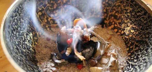 Die erste Räucherung mit Kohle durchführen - alle folgenden können auch durchaus mit einem Stövchen durchgeführt werden.