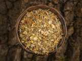 Bestandteile: Amethystpulver, Dammar weiß, Dictamus, Erdrauch, Johanniskraut, Lavendel, Orangenblüten, Pfefferminze, Salbei, Thymian, Wacholdernadeln
